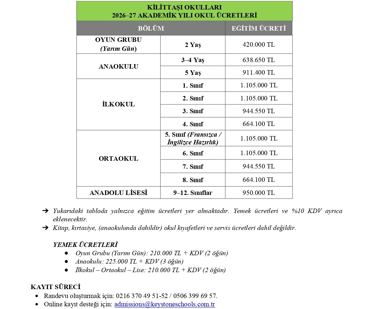 2026-2027 Okul Ücreti